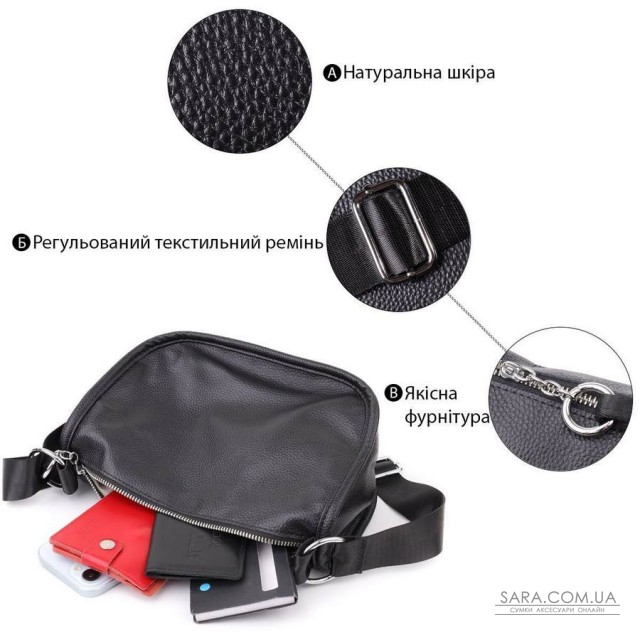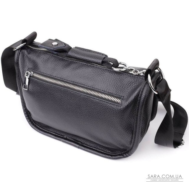 Женская кожаная сумка e в черном цвете выполнена из качественной зернистой кожи и имеет полукруглую аккуратную форму, подчеркивающую элегантность и современный стиль. Особый акцент модели — декоративный бегунок в виде стильного брелка, который добавляет индивидуальности и изысканности. Сумка закрывается на молнию, внутри одно основное отделение с двумя карманами на молнии и двумя открытыми карманами для мелочей, на тыльной стороне расположен внешний карман на молнии. Текстильный ремень не съемный и обеспечивает удобное ношение, а фурнитура под серебро гармонично дополняет общий образ. Эта сумка станет универсальным аксессуаром для повседневного использования и особых случаев, сочетая практичность, стиль и внимание к деталям.