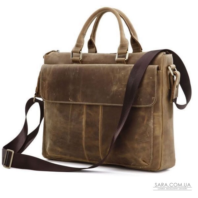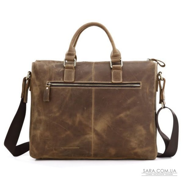 Уникальная сумка-портфель их качественной винтажной кожи коричневого цвета. Сумку можно носить как в руке так и через плече, при помощи текстильного плечевого ремня коричневого цвета.
