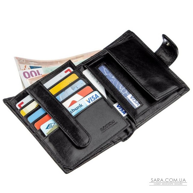 Компактный, но очень практичный и удобный мужской кошелек классического черного цвета. Выполнен данный аксессуар из натуральной кожи высокого качества, которая имеет отличные эксплуатационные характеристики. Кошелек имеет много необходимых отделений для Ваших карточек, документов и конечно же денег. Закрывается он на удобную кнопку, внутри также есть отделения на молнии. Бумажник можно носить как в кармане, так и в сумке или борсетке. Если Вы остановили свой выбор именно на этом кошельке, то Вы имеете отличный вкус и чувство стиля. Это изделие прослужит Вам очень долго. Упакован кошелек в плотную картонную коробку.