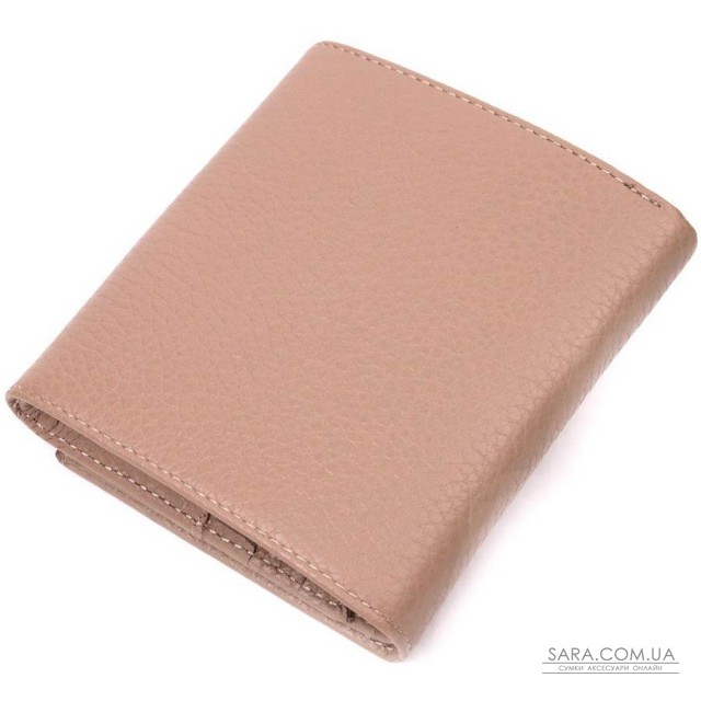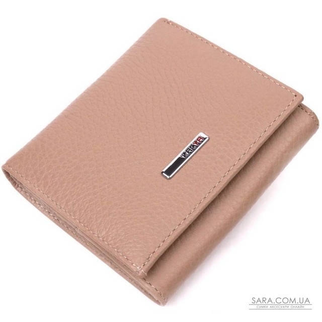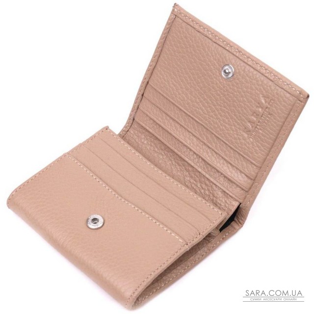 Функциональный компактный женский кошелек из натуральной кожи высокого качества. Внутри есть отделение для купюр, шесть ячеек для кредитных карт, необычная монетница и скрытый один карман. В изделии использована качественная фурнитура, а также прочная фирменная подкладка. Не большой кожаный кошелек поместится даже в самую маленькую сумочку. Закрывается модель в два сложения на кнопку. Такой кошелек, однозначно, порадует любую женщину.