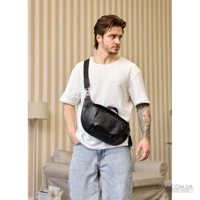 Велика чорна чоловіча поясна сумка