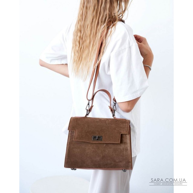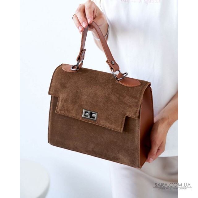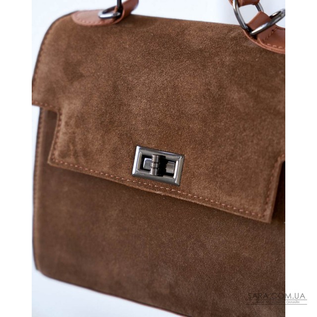Сумка женская 15252 от производителя «Welassie» Украина, цвет рыжий, материал сумки экокожа высокого качества со вставкой с натуральной замши .Сумка открывается при помощи замка и молнии. Внутри сумка имеет один открытый карман и на змейке