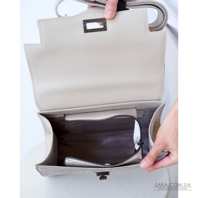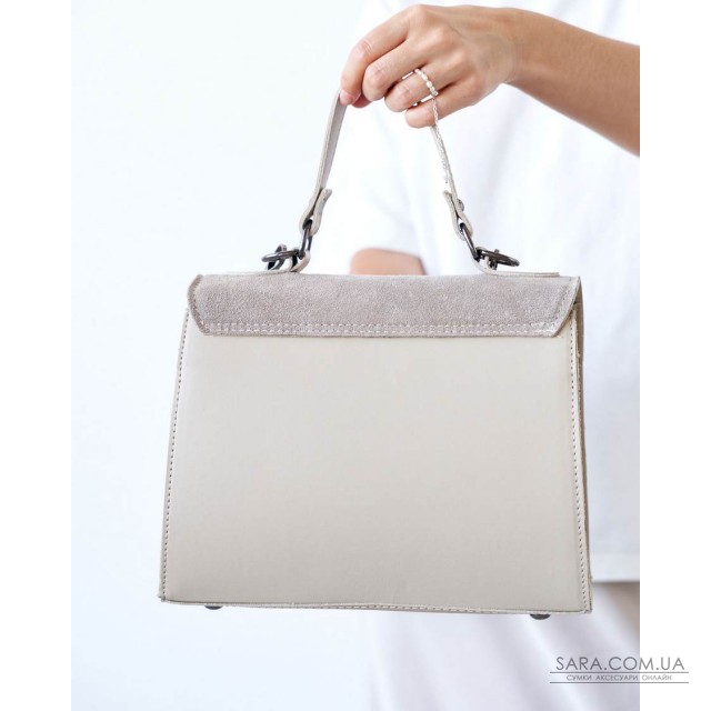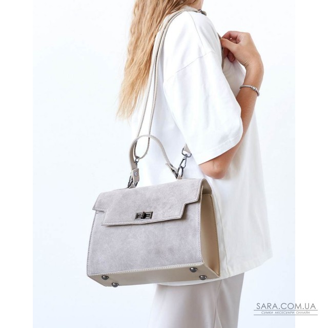 Сумка женская 15259 от производителя «Welassie» Украина, цвет бежевый, материал сумки экокожа высокого качества со вставкой с натуральной замшей. Сумка открывается при помощи замка и молнии. Внутри сумка имеет один открытый карман и на змейке