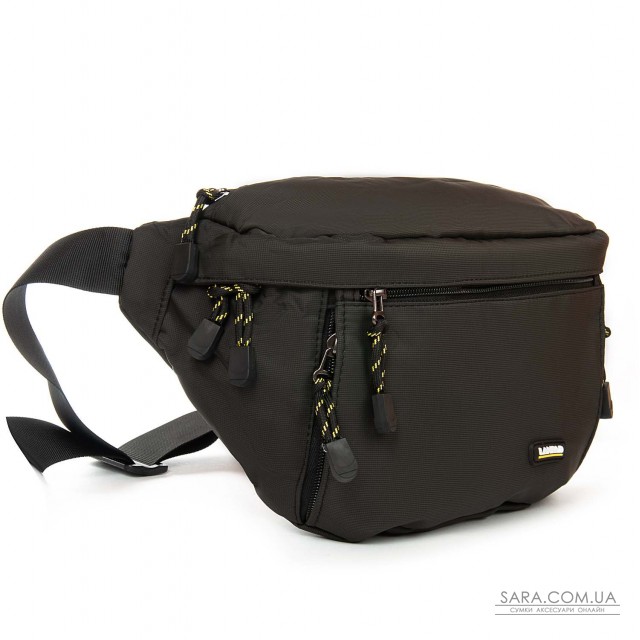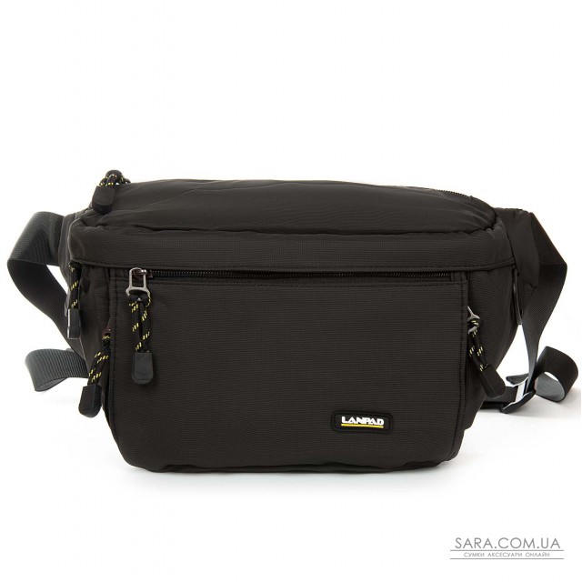 Мужская сумка пояс/плечо Lanpad. Два основных отделения, закрываются на молнии. Внутри есть открытый карман. На фасаде находятся 3 кармана на молнии.