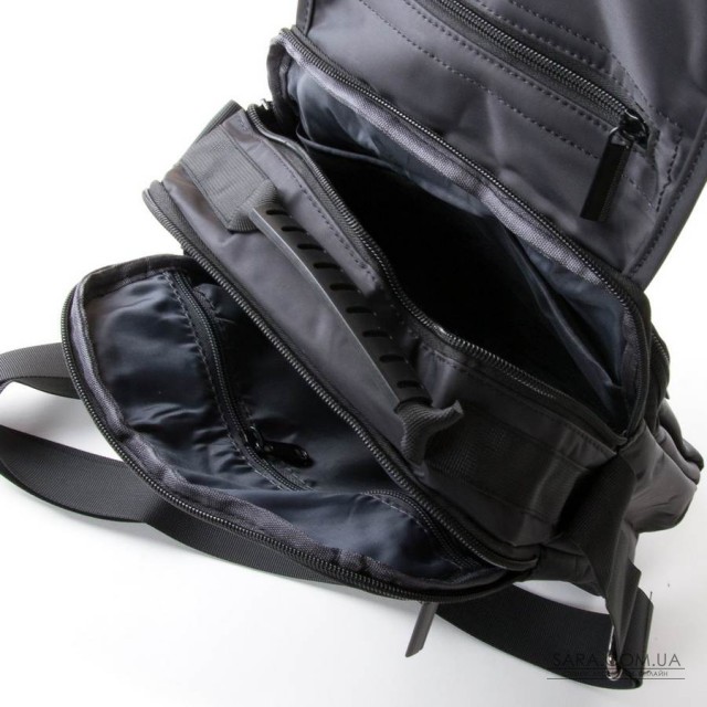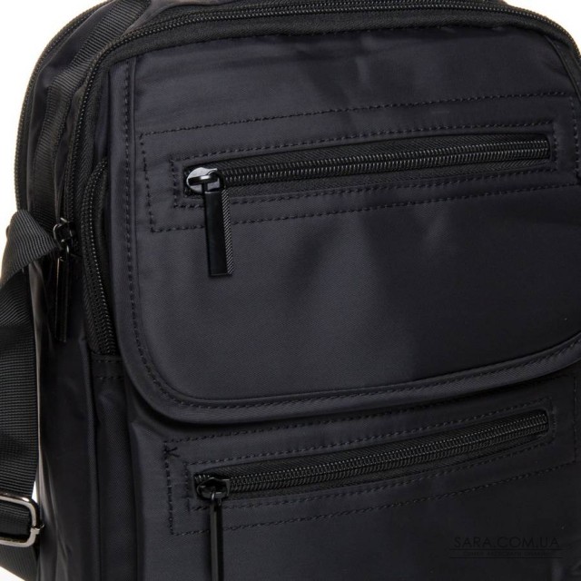 Мужская сумка Lanpad. Изготовлена из материала с водоотталкивающим покрытием. Два отделения, закрываются на молнию. Внутри отделений есть карман на молнии и открытый карман. На фасаде находится дополнительное отделение под клапаном. На фасаде и обратной стороне расположены карманы на молнии. Регулируемый плечевой ремень, шириной 4см.