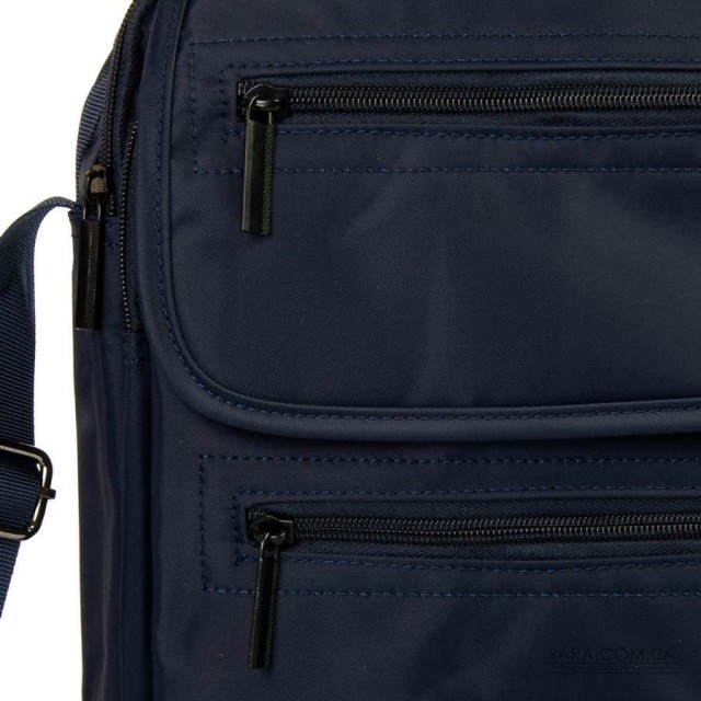 Мужская сумка Lanpad. Изготовлена из материала с водоотталкивающим покрытием. Два отделения, закрываются на молнию. Внутри отделений есть карман на молнии и открытый карман. На фасаде находится дополнительное отделение под клапаном. На фасаде и обратной стороне расположены карманы на молнии. Регулируемый плечевой ремень, шириной 4см.