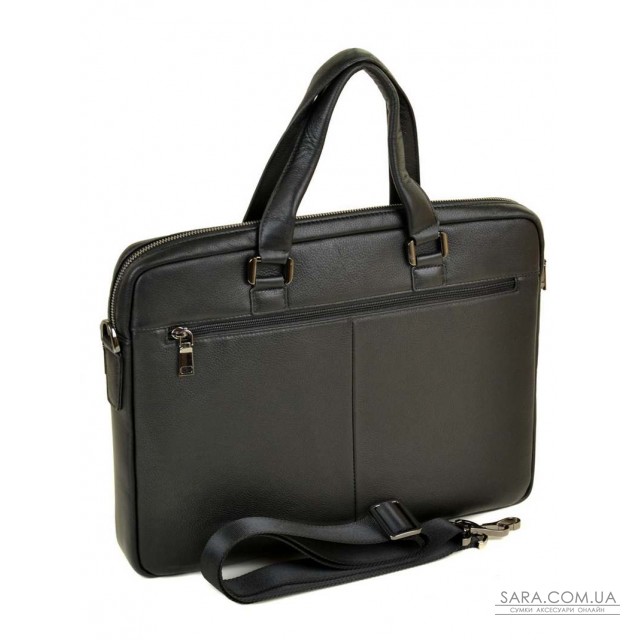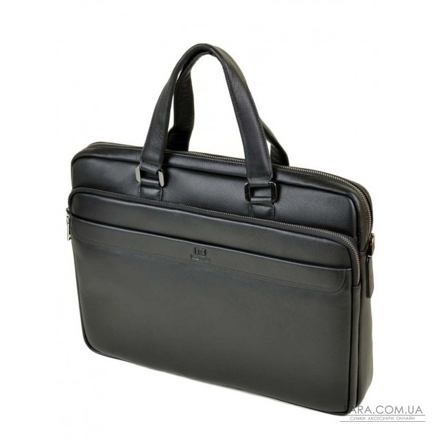 Мужской кожаный портфель Bretton. Закрывается на молнию. Внутри находится одно основное отделение, карман для нетбука или планшета, боковой карман на молнии и открытый двойной карман. На фасаде есть два кармана для бумаг формата А4, а на обратной стороне есть один карман на молнии. Регулируемый плечевой ремень в комплекте. Размер (см.) 39*29*9, высота ручки 13 см.