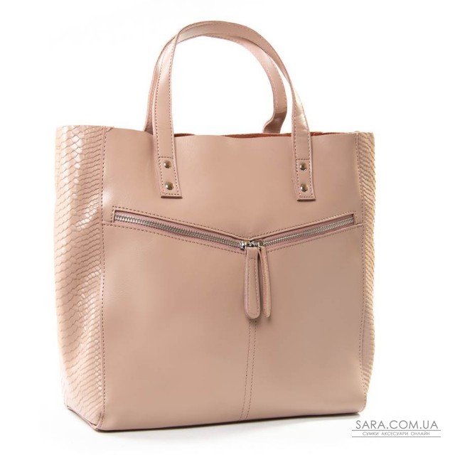 Женская сумка из натуральной кожи. Закрывается на молнию. Внутри сумки двойное отделение, разделенное карманом-перегородкой на молнии, боковой карман на молнии и открытый двойной карман. На обратной стороне сумки карман на молнии. На фасаде два кармашка на молнии. В комплекте регулируемый плечевой ремень.