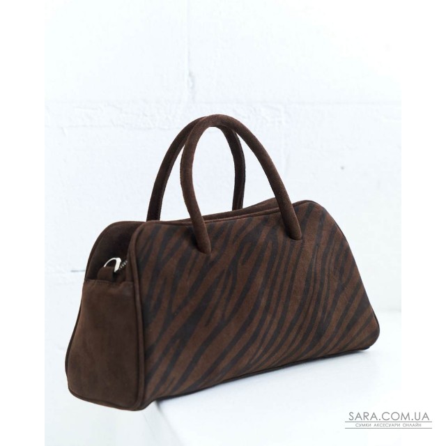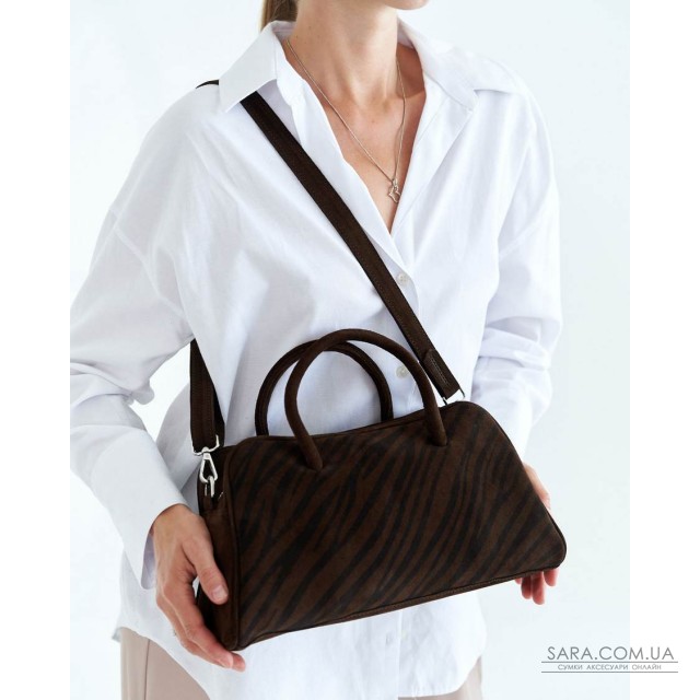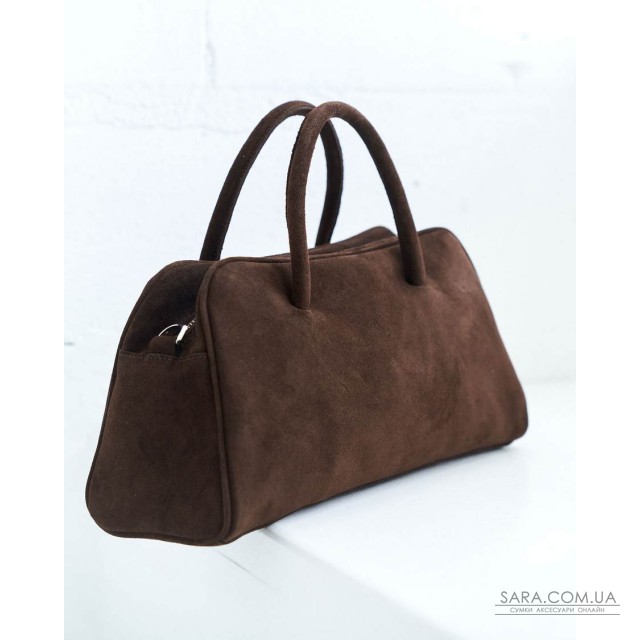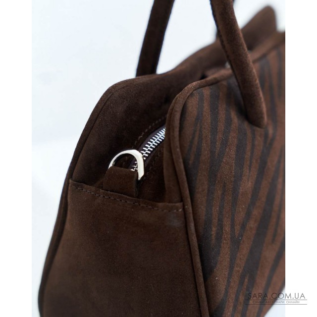 Сумка K73155, цвет шоколадный, материал сумки натуральная кожа, замша. Сумка открывается при помощи молнии. Внутри сумка имеет один открытый карман и карман на молнии.