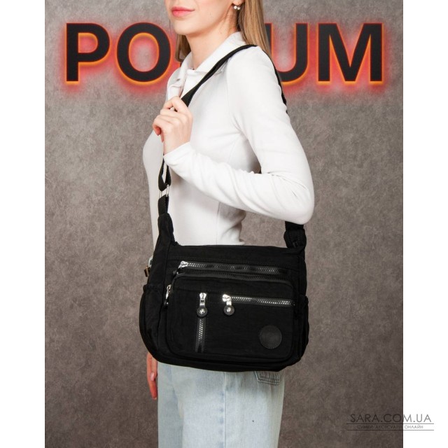 Изготовлена из водоотталкивающего плотного текстиля. Закрывается на молнию. Внутри находится основное и дополнительное отделения, разделенные карманом-перегородкой на молнии и большой боковой карман на молнии. На фасаде находятся четыре кармана на молнии, а на обратной стороне один карман. На торцах сумки есть небольшие открытые карманы