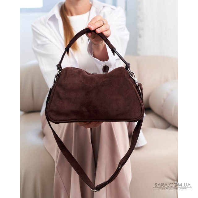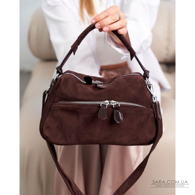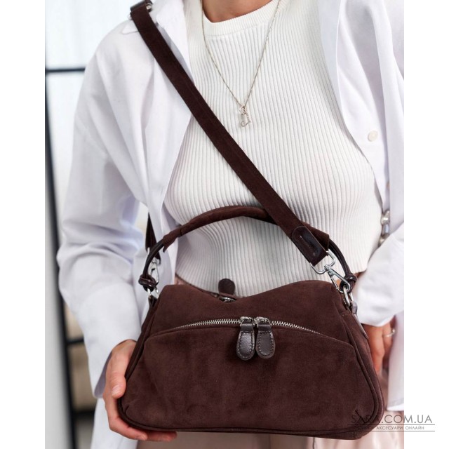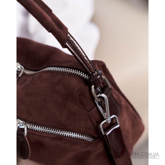 Сумка K73456, цвет мокко, материал сумки натуральная кожа, замша. Сумка открывается при помощи молнии. Внутри сумка имеет один открытый карман и карман на молнии.Снаружи имется карман для мелких вещей.