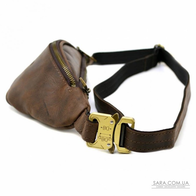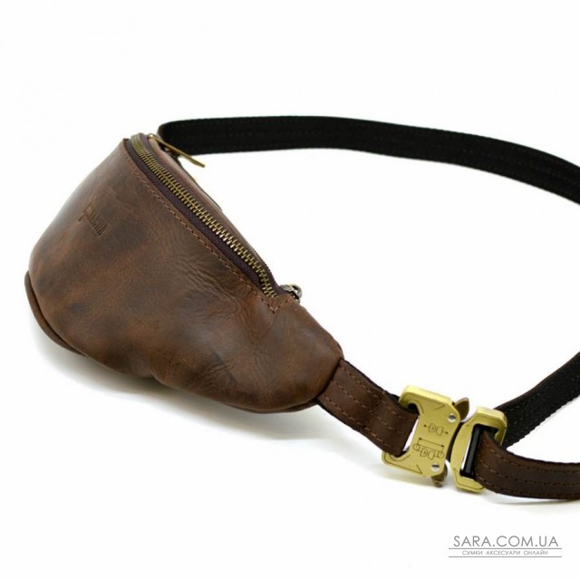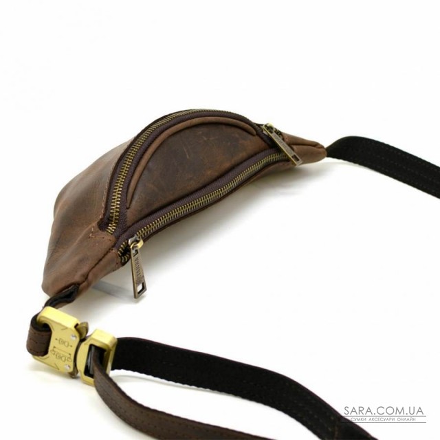 Напоясная маленькая сумка из натуральной лошадиной коричневой кожи RC-3034-3md от украинского бренда TARWA. Атрибут станет Вашим спутником как в поездках и путешествиях, так и просто на каждый день. В этой сумочке Вы сможете разместить много мелких и необходимых Вам личных предметов: смартфон, маленькое портмоне, права, ключи. Аксессуар имеет два отделения, которые застегиваются на отдельную молнию, с внутренним врезным карманом, также на молнии. Металлическая фурнитура в цвете темный никель. Напоясный регулируемый ремень состоит из кожи и текстиля, что предотвращает его растягивание. Подклад выполнен из прочной ткани. В изделии использована очень надежная металлическая застежка - фастекс.