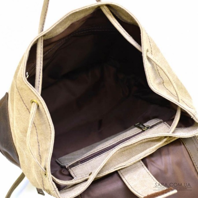 Одно основное отделение под кожаным клапаном на затяжке с двумя фиксаторами - фиксатор затяжки и фиксатор отверстия на липучке, благодаря которой ваш рюкзак случайно никогда не откроется.