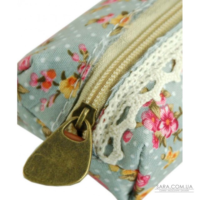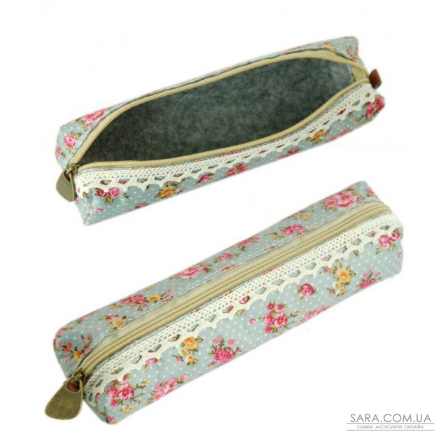 Мягкий пенал из ткани с цветочным рисунком голубого цвета.Одно отделение на молнии