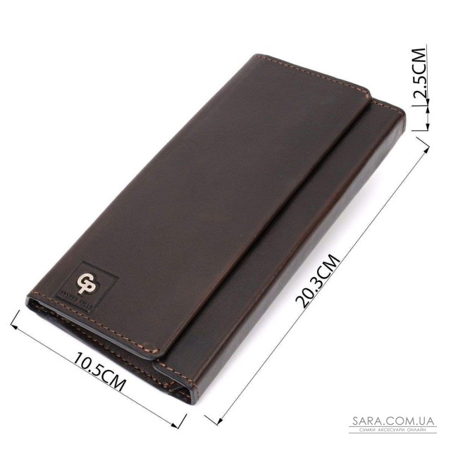 Функциональный кошелек который состоит из двух частей (карман для мобильного снизу аксессуара на клапане с магнитами и основная часть сверху для купюр, кредиток и мелочи, которая закрывается также на клапан с магнитами). Аксессуар пошит из итальянской гладкой кожи высочайшего качества в красивом коричневом цвете. Современный дизайн, элитная кожа, качественная фурнитура - все это подчеркивает действительно качественную вещь. Стоит отметить, что внутри портмоне выполнен также из натуральной кожи, без тканевой подкладки. Аксессуар подчеркнет вашу индивидуальность и отменный вкус. Уверены, что такой подарок оценит любой мужчина. Упаковано изделие в красивый войлочный чехол.