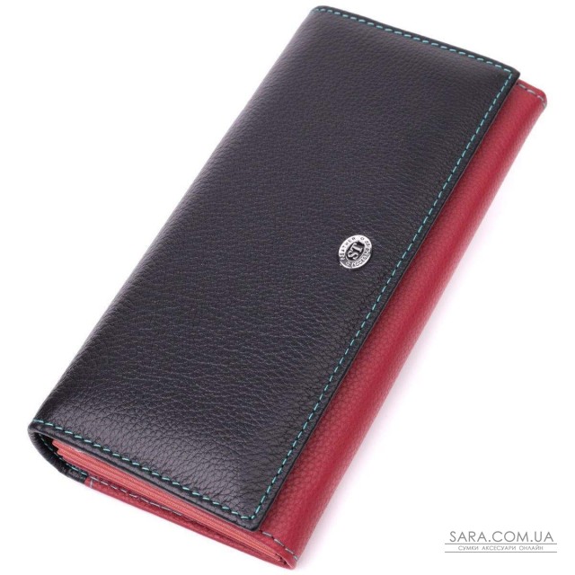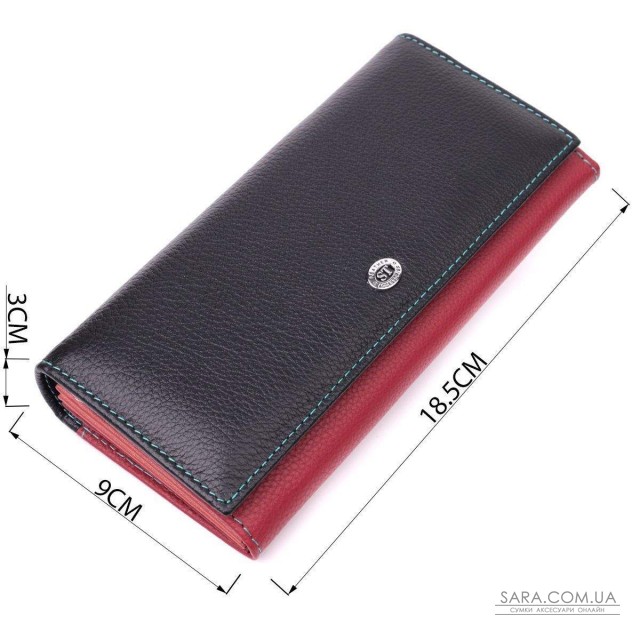 Вместительное женское портмоне в два сложения из натуральной кожи высочайшего качества. Первое, что бросается в глаза это цветовое решение, вместо однотонного аксессуара мы имеем разноцветный, который содержит два основных наружных цвета и несколько дополнительных внутри. Кожаное портмоне очень практичное и служит достаточно долго. Аксессуар состоит из четырех вместительных карманов для купюр, двух карманов на молниях через всю длину, восьми ячеек для пластиковых карт, скрытого кармана и наружного кармана на молнии, что отлично прослужит для монет. Портмоне дополнено надежной фурнитурой. Укомплектован кошелек в фирменную картонную коробку белого цвета.