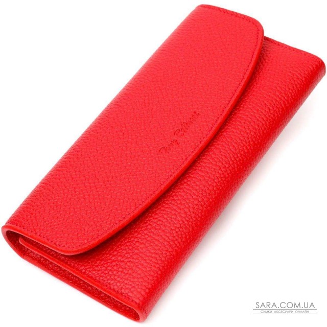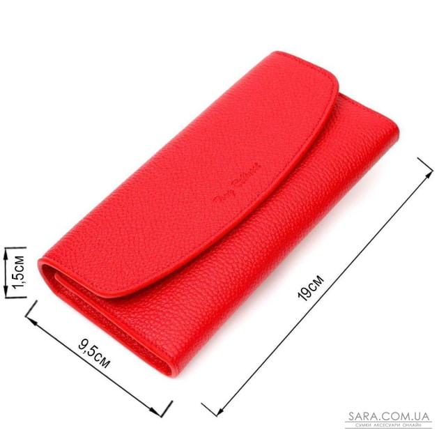 Красочный женский кошелек из натуральной кожи флотар, для которой характерна прочность, износостойкость и зернистая фактура. Аксессуар состоит из одного широкого отделения для купюр, двенадцати ячеек для пластиковых карт, одного прилегающего кармана и монетницы на молнии. В изделии использована качественная фурнитура золотистого цвета. Закрывается кошелек клапаном на кнопку. Покупая этот кожаный кошелек, Вы не только приобретаете стильную вещь, но и получаете качественный аксессуар, который прослужит не один год.