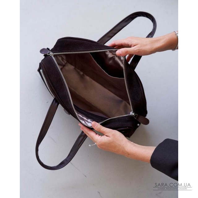 Сумка женская K73665, цвет шоколадный, материал натуральная замша. Сумка открывается при помощи молнии. Внутри сумка имеет один открытый карман и на змейке. Снаружи имеется карман для мелких предметов.