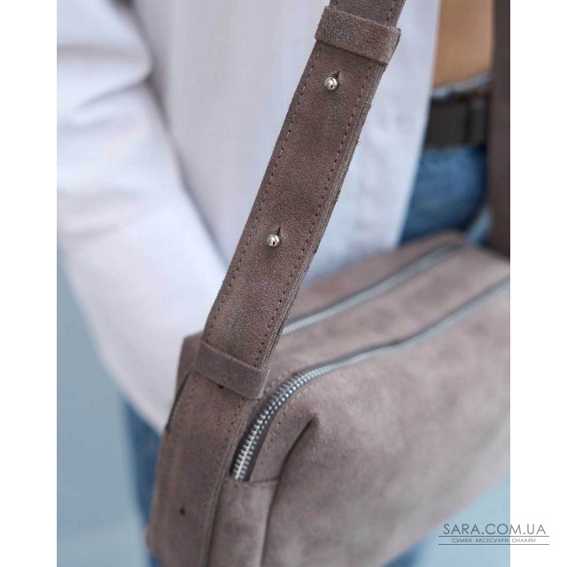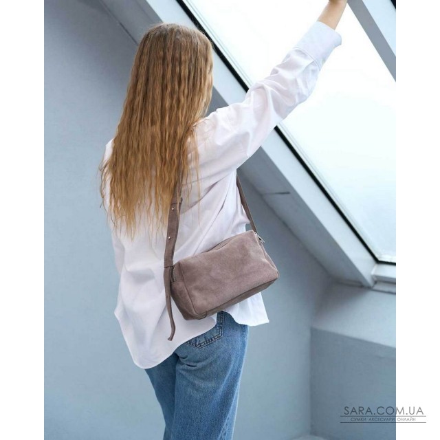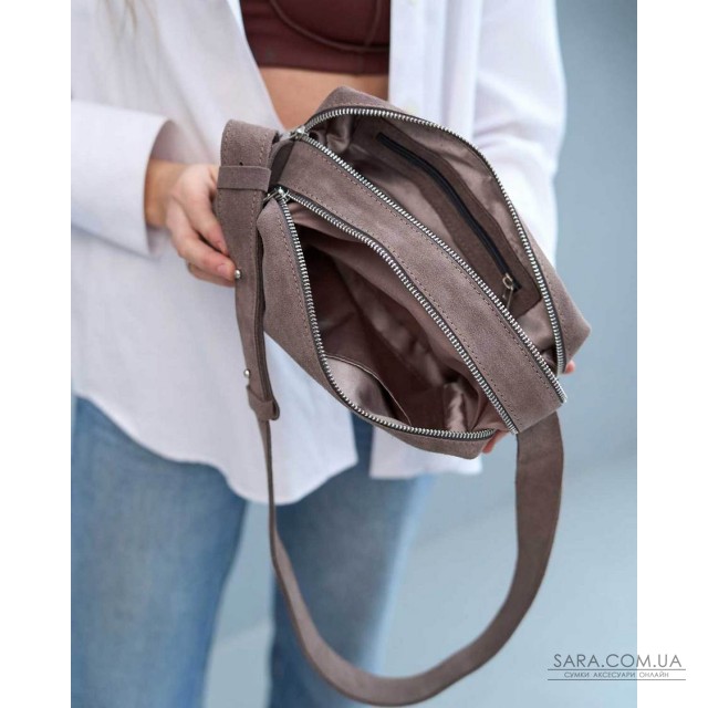 Замшевая сумка женская K74751, производитель WeLassie Украина, цвет капучино, материал натуральная замша. Сумка на два отделения, открывается при помощи молнии. Внутри сумка имеет один открытый карман и карман на змейке.