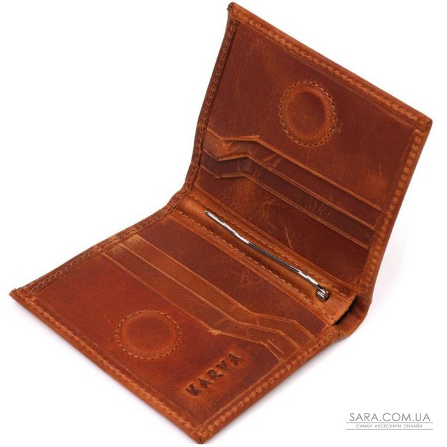 Добротный мужской зажим из натуральной винтажной кожи, в красивом рыжем цвете. Изделие закрывается в два сложения на магнит. На лицевой стороне в виде декора расположен логотип производителя, а также для декора край зажима прошит светлой нитью. Аксессуар упакован в фирменную коробочку. Изделия из натуральной кожи всегда будут отличным подарком для близкого человека.
