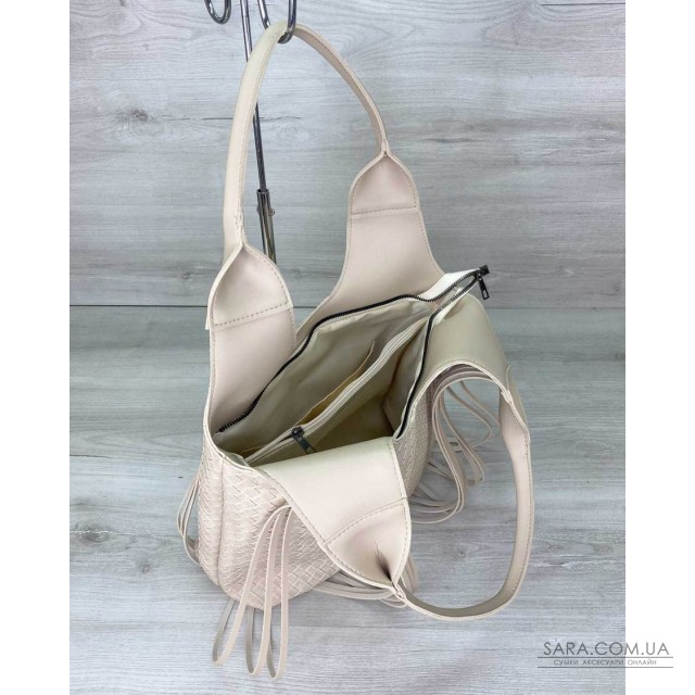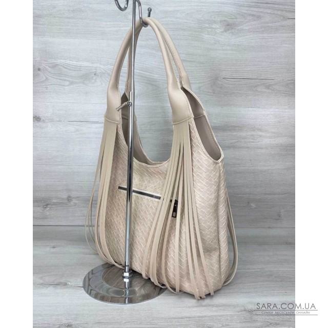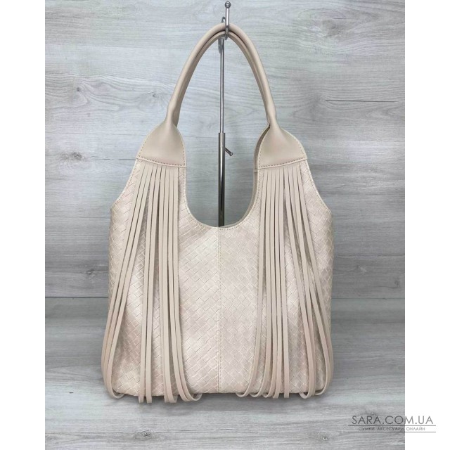 Сумка женская 63819 производитель Welassie Одесса, выполнена из экокожи высокого качества. Сумка украшена бахромой. Открывается при помощи молнии. Внутри сумка на плотной подкладке, поделена на две части вшитой посередине косметичкой на молнии. Также имеются внутри два кармана: на молнии и открытый. Снаружи имеется карман для мелких предметов.