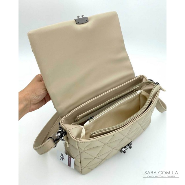 Сумка женская стеганая 65609 от производителя "Welassie" Украина из экокожи высокого качества. Сумка открывается при помощи замка и молнии. Внутри сумка на плотной подкладке. Вшитая посередине косметичка делит сумку на две части. Также имеет два кармана: на молнии и открытый. Ручка сумки украшена цепочкой. Замок сумки открывается движением двух цилиндров навстречу друг другу. Плечевой ремень регулируется под разную длину, максимальная длина 135 см.