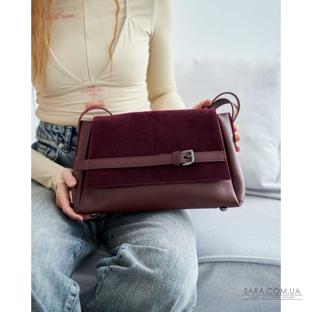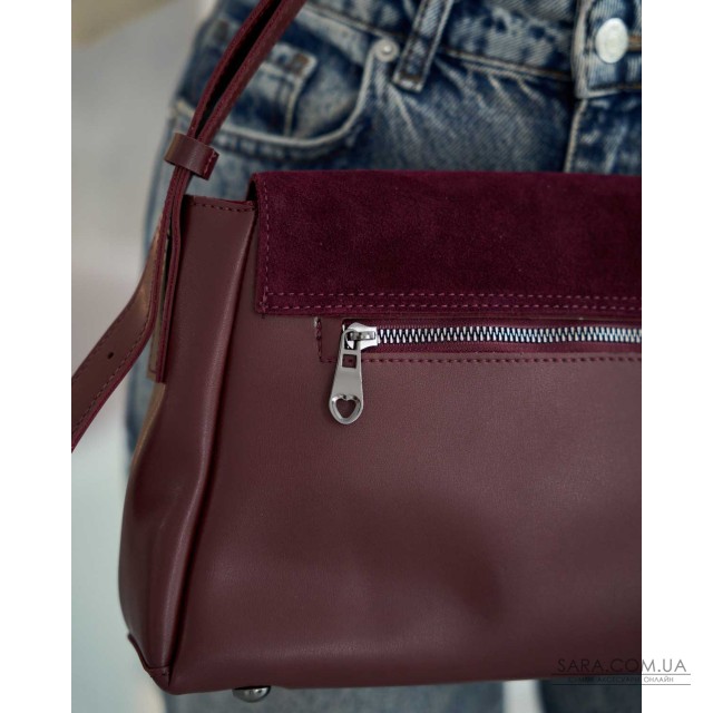 Сумка женская 14257 от производителя «Welassie» Украина, цвет бордовый, материал сумки натуральная замша, экокожа высокого качества. Сумка открывается при помощи магнита и молнии под клапаном. Внутри сумка на подкладке, имеет открытый карман и карман на молнии.