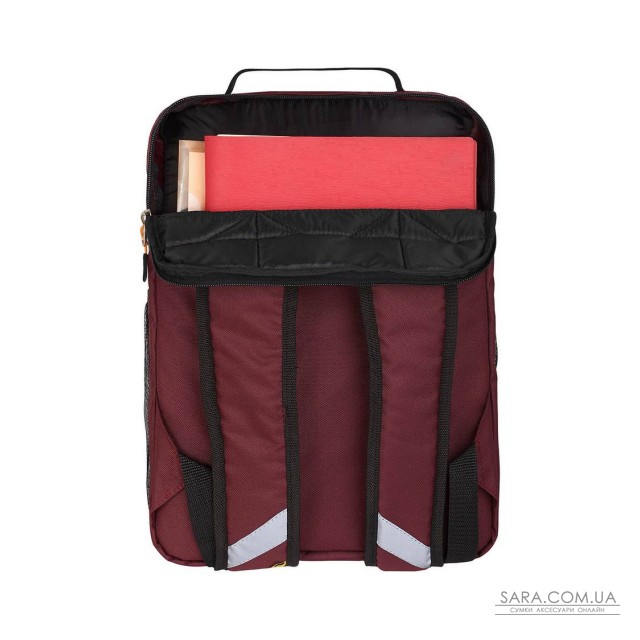 Одна зовнішня кишеня на спині, куди запросто поміщається будь-15" ноутбук, або, при використанні рюкзака школярами туди легко складаються папки формату А4.