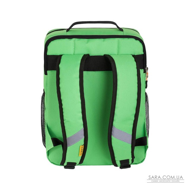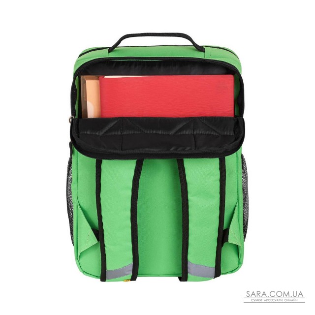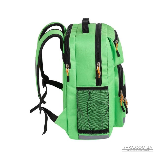 Одна зовнішня кишеня на спині, куди запросто поміщається будь-15" ноутбук, або, при використанні рюкзака школярами туди легко складаються папки формату А4.