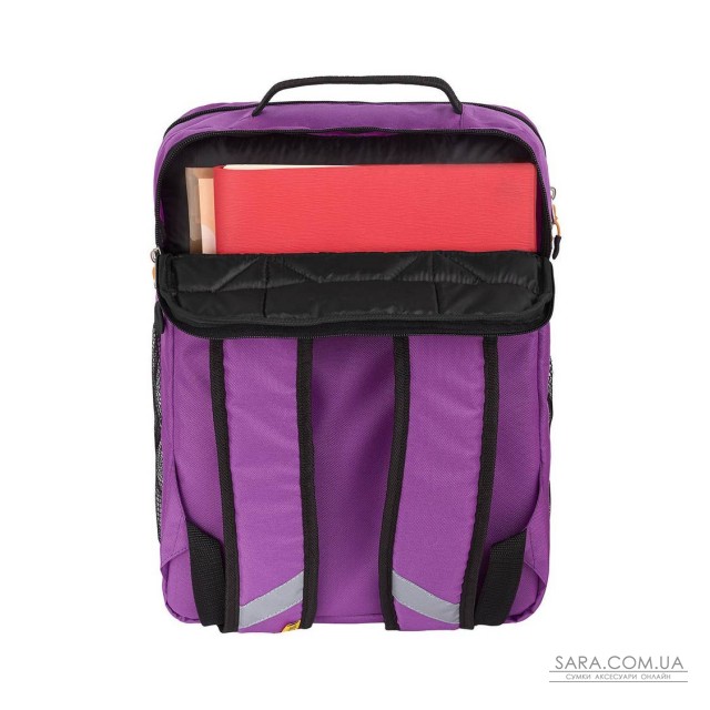 Одна зовнішня кишеня на спині, куди запросто поміщається будь-15" ноутбук, або, при використанні рюкзака школярами туди легко складаються папки формату А4.