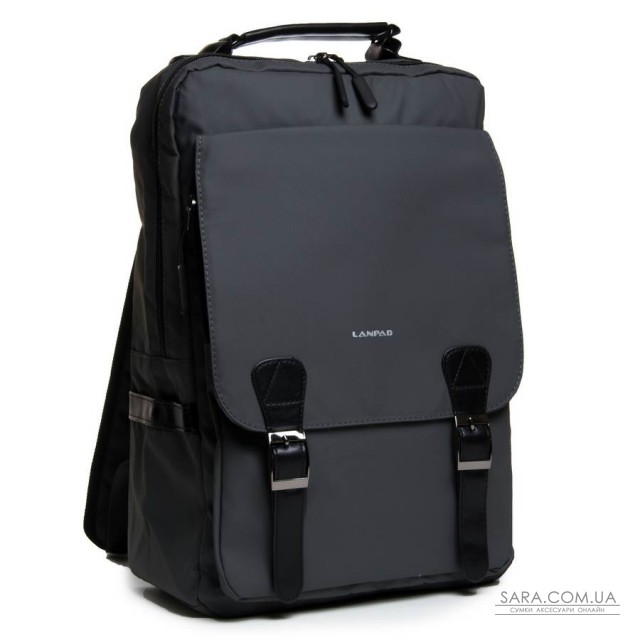 Міський рюкзак Lanpad. Виготовлений з матеріалу з водовідштовхувальним покриттям. Одне відділення закривається на блискавку. Усередині є бічна відкрита кишеня для ноутбука і подвійна відкрита кишеня. На фасаді знаходиться одна велика кишеня на блискавці та під клапаном. На бічних стінках є дві відкриті кишені. Плечові лямки регулюються по довжині.