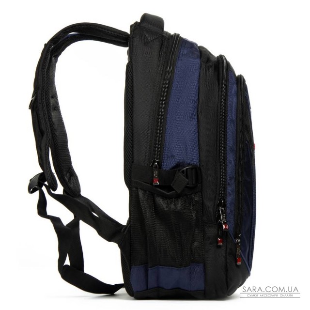 Усередині рюкзака два відділення на блискавці. У передньому відділенні розташована кишеня-органайзер, а в другому відділенні є кишеня для ноутбука та кишеня для телефону. На фасаді розташована велика кишеня на блискавці. Зовні на бічних сторонах рюкзака розташовані кишені-сітки для пляшок з водою об'ємом 0,5 літра.