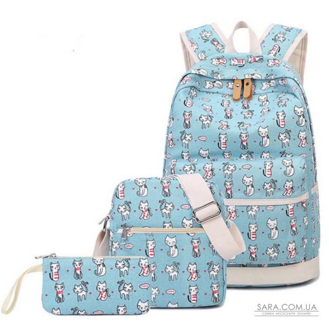 В набір входить рюкзак, сумка на плече і косметичка.