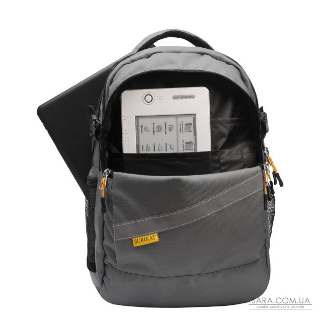 - На допоміжному відділенні на спинці рюкзака легко поміститься ноутбук з діагоналлю до 15"