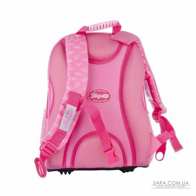 - Особливості: рельєфна ортопедична спинка з каналами для циркуляції повітря перешкоджає викривленню хребта. Широкі і м'які лямки рівномірно розподіляють навантаження на плечі. Нагрудний ремінь для додаткової фіксації. Ручка - петля з пластиковою накладкою. Брендована підкладка і металева фурнітура. Посилене дно з захисними накладками. Світловідбиваючі елементи забезпечать видимість дитини в темний час доби. Нанесена шелкографические друк.