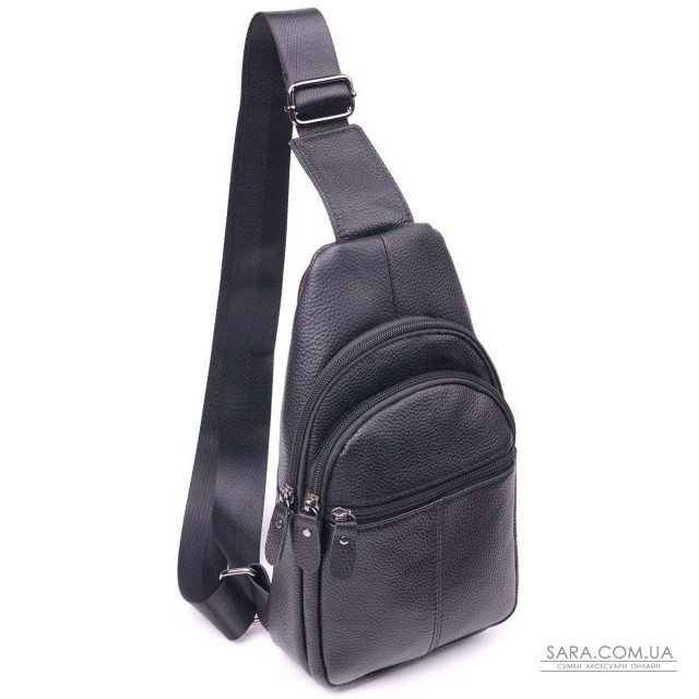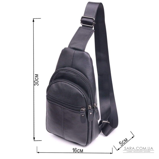 Практична чоловіча сумка слінг через плече з натуральної високоякісної шкіри з відмінними характеристиками якості та зносостійкості. Аксесуар має досить містке основне відділення та додаткові кишені на зовнішній та тильній стороні для речей, які мають бути швидко доступні. Лицьова сторона, сумки декорована рівним світлим рядком, що надає виробу цікавого стильного вигляду. Ремінь можна регулювати по довжині, виконаний з високоміцного текстилю. Шкіряна сумка, завжди була чудовим подарунком для рідних та близьких людей.