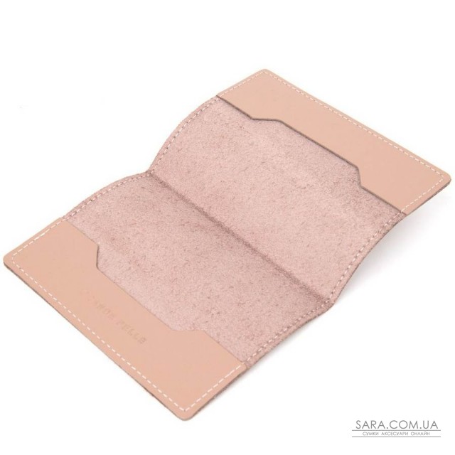 Красива шкіряна обкладинка на паспорт. Має ніжний бежевий колір з розовинкою, що виглядає дуже стильно і оригінально. Шкіра приємна на дотик і має гладку матову фактуру. На лицьовій стороні є фірмова напис. Упакована в чохол.