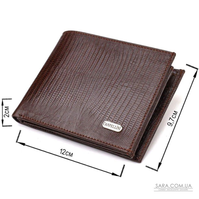 Фактурний і приємний на дотик чоловічий гаманець із натуральної шкіри. Аксесуар має основне відділення для купюр, сім осередків для кредиток, три кишені під сіточкою для перепусток, дві приховані кишені, кишеню на блискавці. На лицьовій стороні, у правому нижньому куті металевий логотип компанії виробника. Якщо ви вибрали товар цієї фірми, можете не сумніватися, що виріб прослужить дуже довго і не втратить свого первісного вигляду.