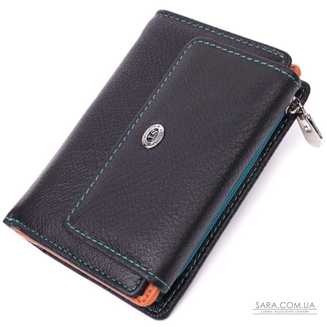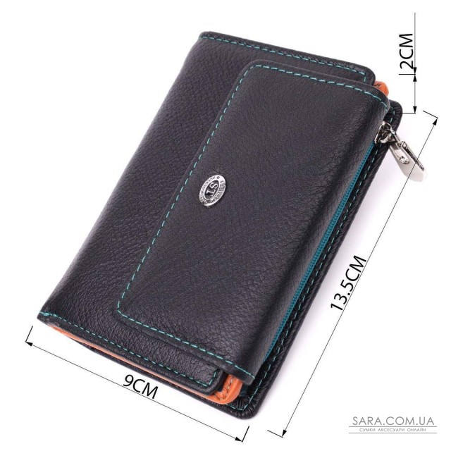 Жіночий гаманець у класичному чорному кольорі, подвійного додавання, що закривається на клапан з магнітом. Аксесуар виконаний з якісної натуральної шкіри, яка чудово носиться і не втрачає свого первісного вигляду з роками. Відмінна риса цієї моделі в яскравому внутрішньому забарвленні. Усередині є два відділення для купюр, дев'ять слотів для пластикових карток, дві приховані кишені та одна монетниця, що закривається на блискавку. Ідеальний аксесуар для любительок гаманців середнього розміру та практичного функціоналу.