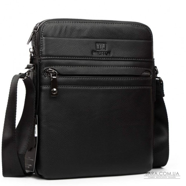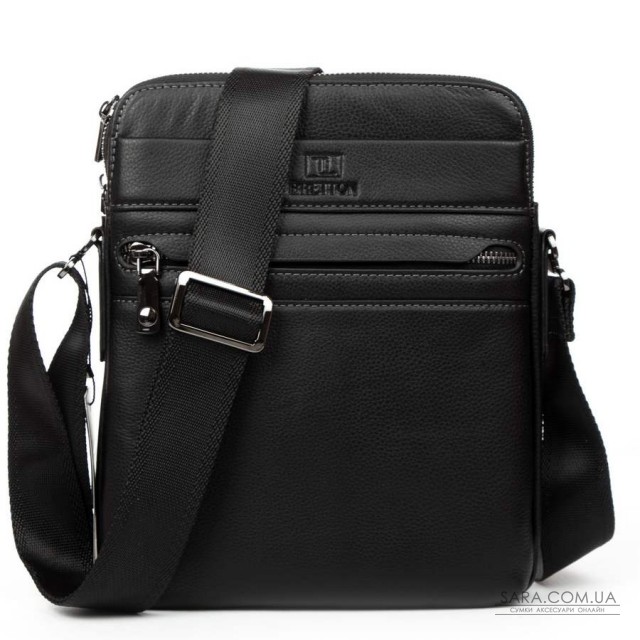 Чоловіча шкіряна сумка-планшет Bretton. Два відділення, що закриваються на блискавку. Усередині одного відділення є бічна відкрита кишеня, а всередині іншого - кишеня на блискавці. На фасаді сумки є дві великі кишені: одна закривається на магнітну кнопку, а друга на блискавку. На звороті розташована кишеня на блискавці.