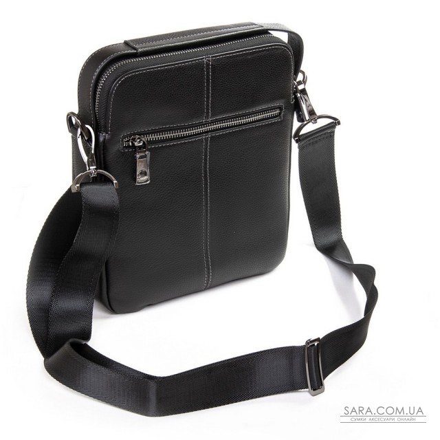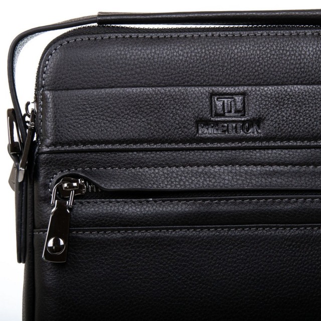 Чоловіча шкіряна сумка-планшет Bretton. Два відділення, що закриваються на блискавку. Усередині одного відділення є бічна відкрита кишеня, а всередині іншого - кишеня на блискавці. На фасаді сумки є дві великі кишені: одна закривається на магнітну кнопку, а друга на блискавку. На звороті розташована кишеня на блискавці. Регульований плечовий ремінь у комплекті.