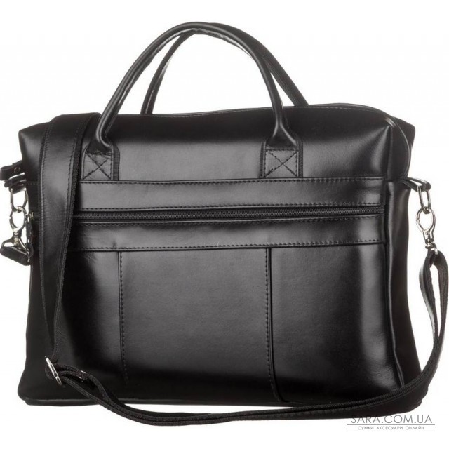 Практична чоловіча сумка з високоякісної натуральної гладкої шкіри, чорного кольору. Аксесуар складається з великого відділення на блискавці в яке можна помістити ноутбук 14 або папку з документами. Головне відділення обладнане кишенею, в яке може поміститися невеликий нетбук або планшет. На задній стінці невелика кишеня на змійці. Зовні обидва боки даного вироби розташоване по одному відділенні на блискавці. Сумку можна переносити в руці за допомогою зручних шкіряних ручок, а також через плече (в комплекті є, регульований плечовий ремінь, який виконаний в комбінації текстильного матеріалу та натуральної шкіри). Колір фурнітури: срібло.