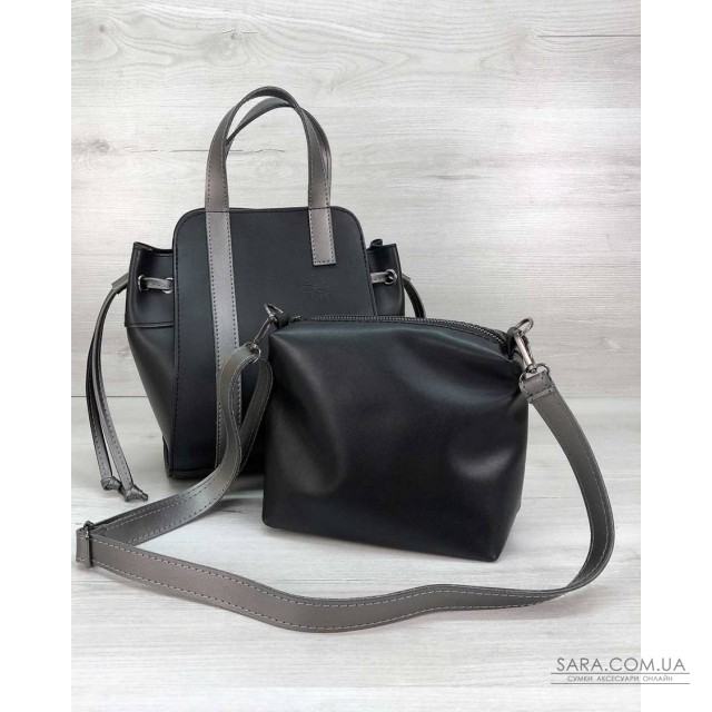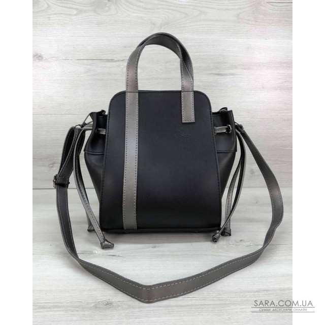Сумка має одне відділення, яке закривається на магніт у верхній частині, з боків є затягування. в комплекті є плечовий ремінь, який Ви можете кріпити на обидві сумки.