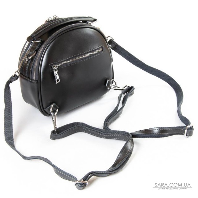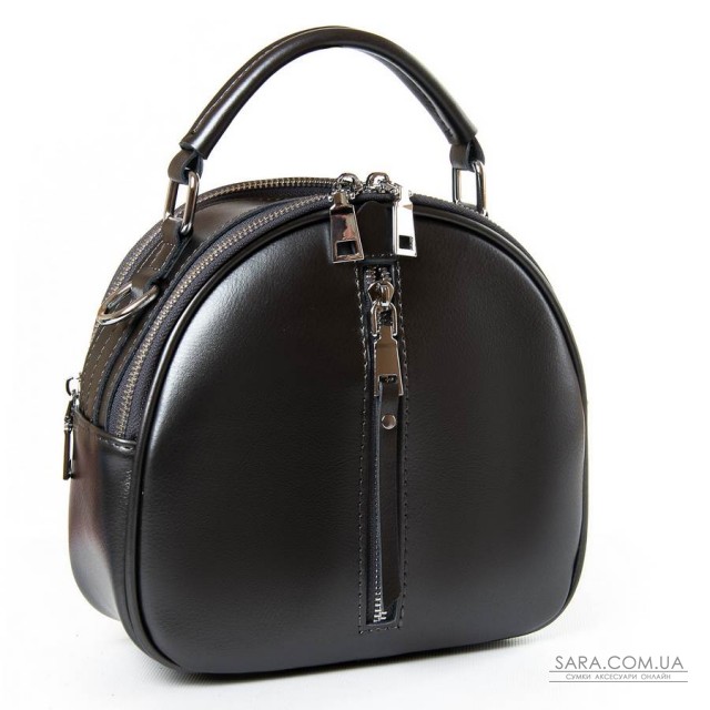 Жіноча шкіряна сумочка-рюкзак. Виготовлена із натуральної щільної шкіри. Можна носити як рюкзак або на плечі на регульованому ремені. Два відділення, закриваються на блискавку. Усередині відділень є подвійний відкритий кишеню і кишеню на блискавки. На фасаді і зворотному боці знаходяться кишені на блискавці. Плечові лямки регулюються по довжині.