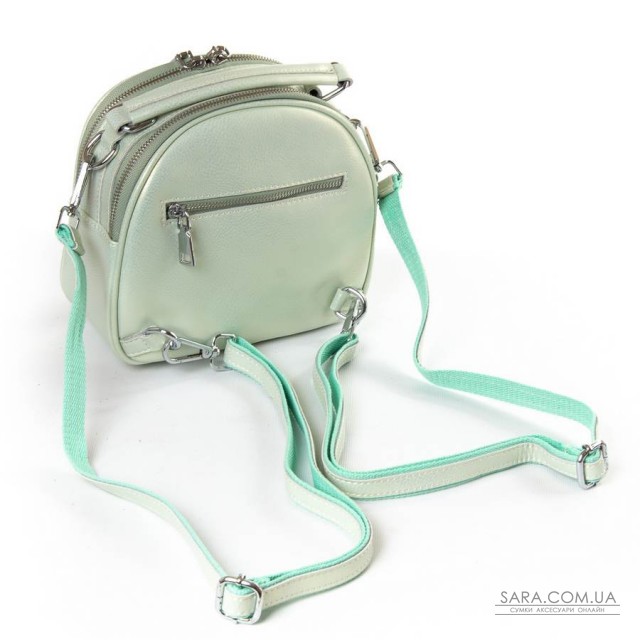 Жіноча шкіряна сумочка-рюкзак. Виготовлена із натуральної щільної шкіри. Можна носити як рюкзак або на плечі на регульованому ремені. Два відділення, закриваються на блискавку. Усередині відділень є подвійний відкритий кишеню і кишеню на блискавки. На фасаді і зворотному боці знаходяться кишені на блискавці. Плечові лямки регулюються по довжині.