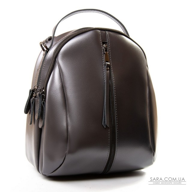 Жіночий шкіряний рюкзак. Виготовлений із натуральної щільної шкіри. Можна носити на плечі на ремені, що регулюється. Два відділення, що закриваються на блискавку. Усередині основного знаходиться відкрита кишеня та кишеня на блискавці. Зовні рюкзака на фасаді та на звороті розташовані кишені на блискавці. Плечові лямки регулюються по довжині.