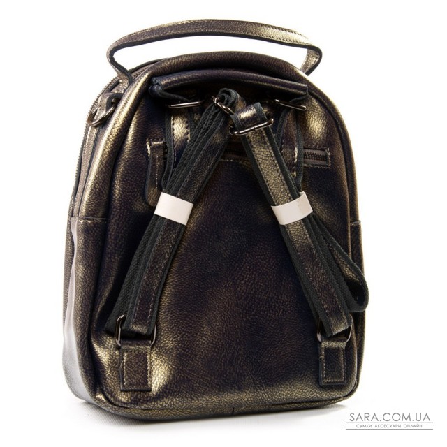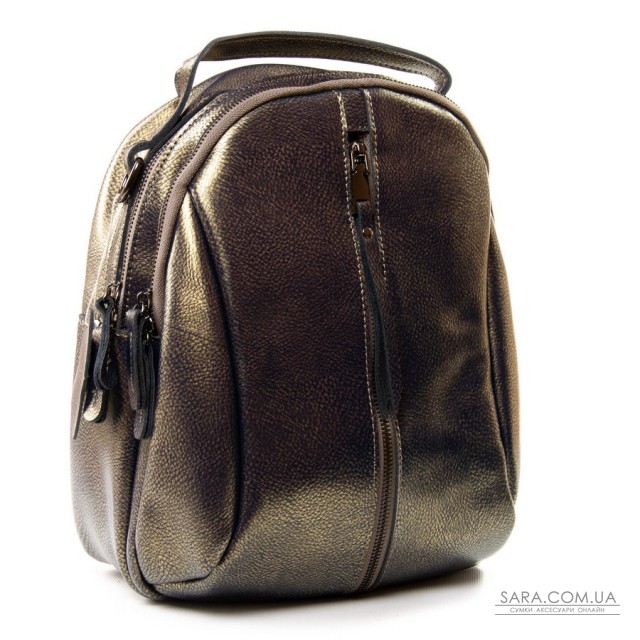 Жіночий шкіряний рюкзак. Виготовлений із натуральної щільної шкіри. Можна носити на плечі на ремені, що регулюється. Два відділення, що закриваються на блискавку. Усередині основного знаходиться відкрита кишеня та кишеня на блискавці. Зовні рюкзака на фасаді та на звороті розташовані кишені на блискавці. Плечові лямки регулюються по довжині.