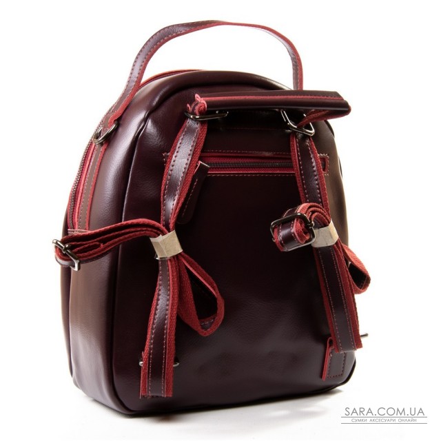 Жіночий шкіряний рюкзак. Виготовлений із натуральної щільної шкіри. Можна носити на плечі на ремені, що регулюється. Два відділення, що закриваються на блискавку. Усередині основного знаходиться відкрита кишеня та кишеня на блискавці. Зовні рюкзака на фасаді та на звороті розташовані кишені на блискавці. Плечові лямки регулюються по довжині.