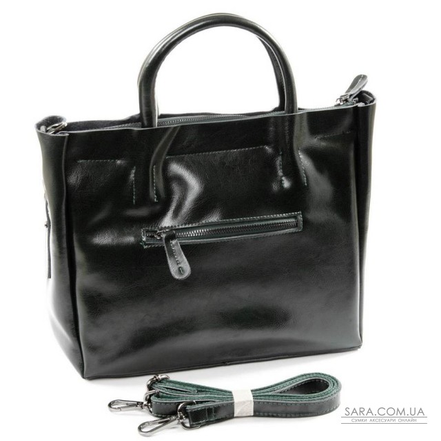 Жіноча сумка. Виготовлена з натуральної шкіри. Закривається на блискавку. Усередині знаходиться подвійне відділення, розділене кишенею-перегородкою на блискавці, подвійна відкрита кишеня і кишеня на блискавці на внутрішніх стінках сумки. На зворотному та лицьовому боці є кишені на блискавці. Сумка має жорстке дно. У комплекті регульований плечовий ремінь.