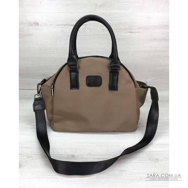 Стильна жіноча сумка Elis компанії Oleto виготовлена із спеціальної водовідштовхувальної плащівки. Ручки і вставки виконані з високоякісної лицьової шкіри. Поєднання натуральної шкіри і тканини робить сумку практичною і еластичною при будь-якій температурі.